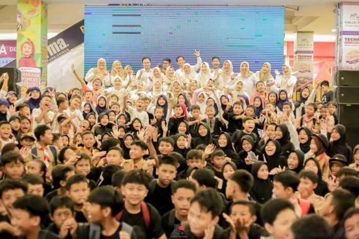 “Kita gelar demo eskul, menampilkan lima jenis: paskibra, pramuka, silat, tari, dan angklung. Sebanyak 557 peserta tampil. Banyak orang tua yang tertarik karena anak-anaknya ingin ikut angklung atau silat setelah melihat pertunjukan,” jelas Fatia.