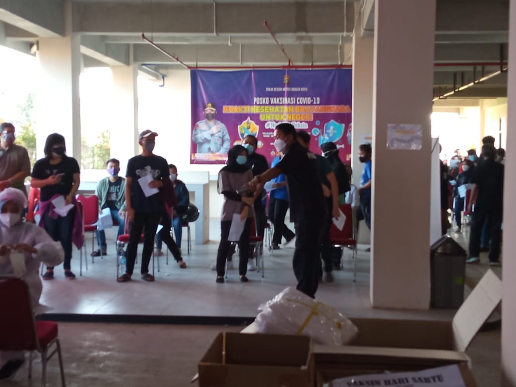 KOTA BEKASI – Polres Metro Bekasi Kota bekerjasama dengan Dinas Kesehatan Kota Bekasi melaksanakan kegiatan sehari 1000 vaksin dalam gerakan sehari satu juta vaksin di 34 Polda seluruh Indonesia.