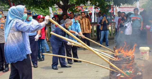 Pemusnahan dengan cara dibakar itu dipusatkan di halaman kantor Kejaksaan Negeri Karawang, Kamis, (19/12), disaksikan Bupati Karawang, unsur Forkopimda Karawang, Kepala Kalapas Karawang, Kepala BNNK Karawang, dan Kepala Pengadilan.