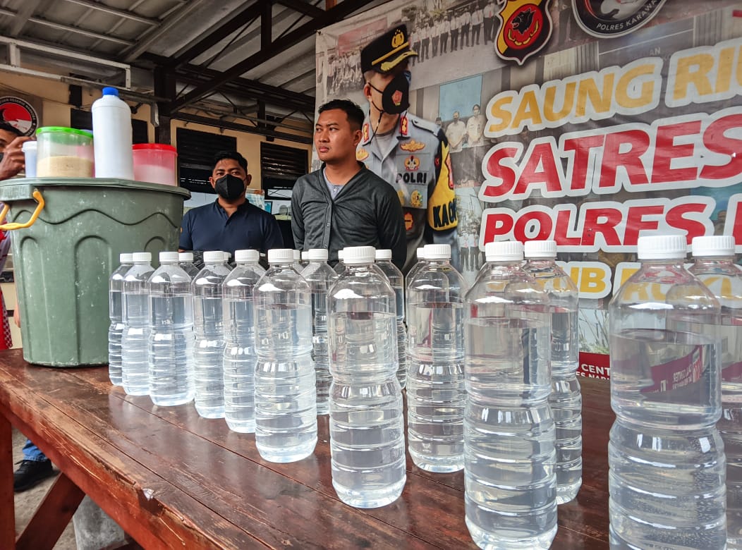 Kapolres Karawang, AKBP Aldi Subartono menjelaskan, dalam penggerebekan ditemukan sejumlah bahan pembuat miras oplosan tersebut.
