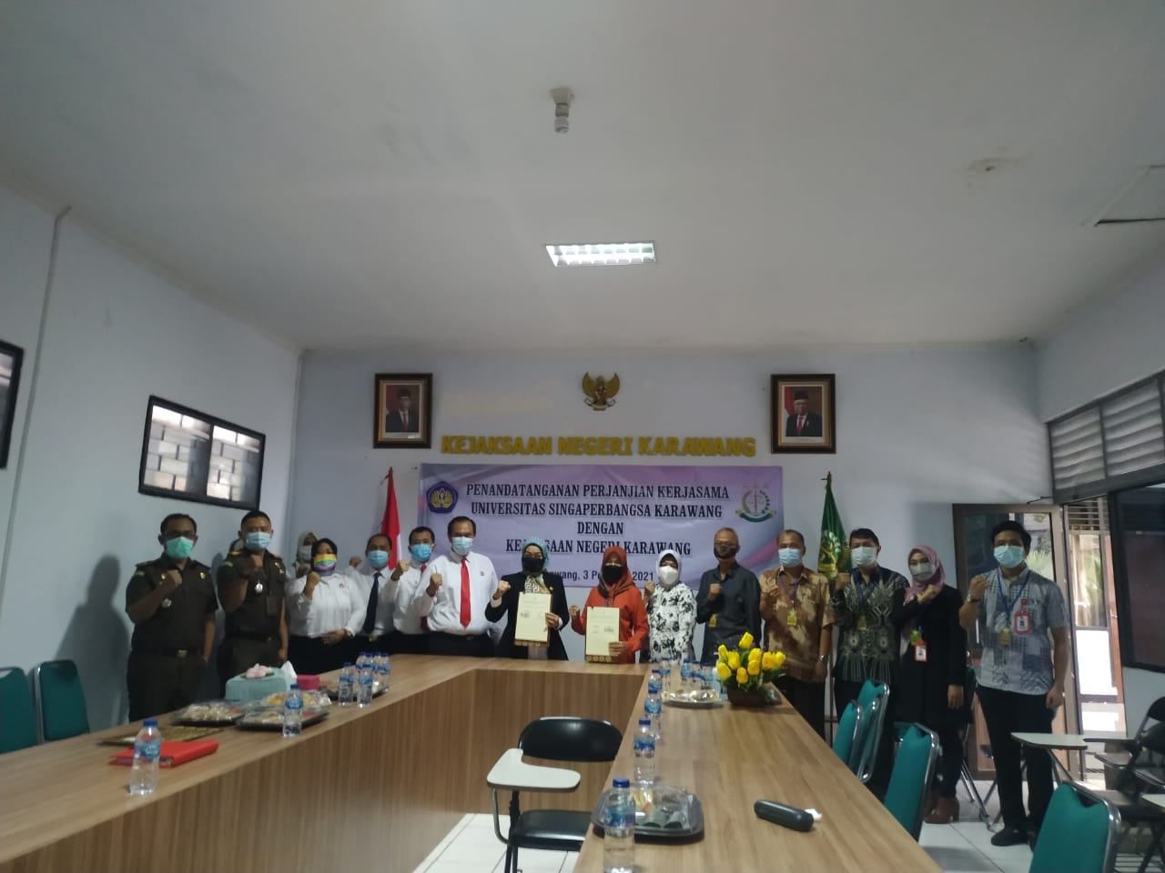 Mengantisipasi permasalahan hukum Universitas Singaperbangsa Karawang (Unsika) menjalin kerjasama dengan Kejaksaan Negeri (Kejari) Karawang, dalam bidang penanganan masalah hukum bidang perdata dan tata usaha negara. Jalinan kerjasama ini ditandai dengan penandatangan nota kesepahaman antara Rektor Unsika, Prof. Dr. Sri Mulyani, Ak., CA. dengan Rohayatie, SH.,M.H., Kepala Kejaksaan Negeri Karawang, di ruang rapat Kejari, Rabu. (3/2/2020)