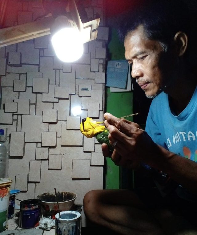 Pengrajin Asal Tanjungpura Karawang yang sulap sampah plastik jadi patung (Foto: Ist)
