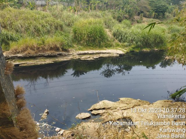 “Air berwarna hitam pekat dan mengeluarkan bau menyengat, di duga tercemar limbah perusahaan,” kata Suherman, Minggu (15/10/2023)
