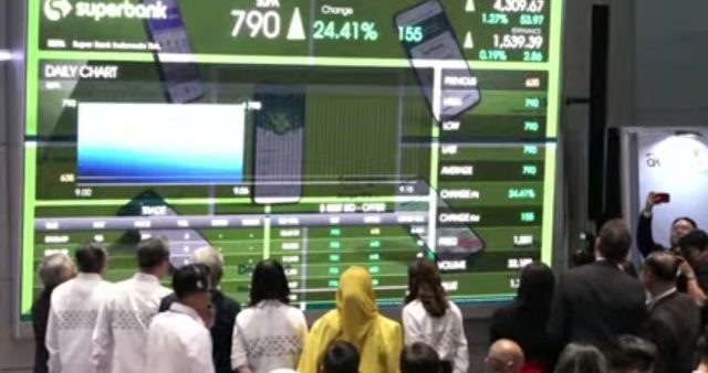 JAKARTA – PT Super Bank Indonesia Tbk dengan kode saham SUPA resmi melantai di Bursa Efek Indonesia (BEI) pada perdagangan hari ini. Pada penawaran umum perdana saham (Initial Public Offering/IPO), SUPA menetapkan harga sebesar Rp635 per lembar saham.