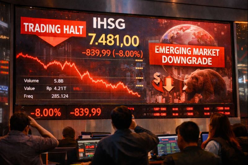 Tekanan muncul seiring kabar mengenai keputusan Morgan Stanley Capital International (MSCI) yang membekukan bobot indeks Indonesia, serta adanya kekhawatiran potensi penurunan status Indonesia dari Emerging Market menjadi Frontier Market. Sentimen tersebut memicu kepanikan investor dan memperburuk tekanan di pasar saham.