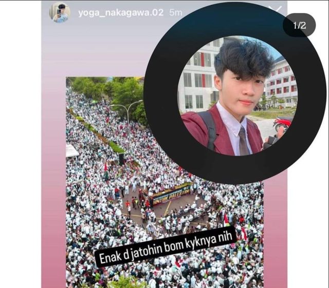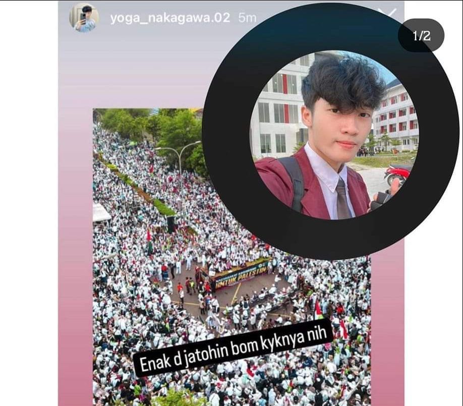 Dalam unggahan pada akun Instagram @yoga_nakagawa.02 terposting sebuah foto aksi bela Palestina dengan caption yang dianggap tidak elok oleh masyarakat.