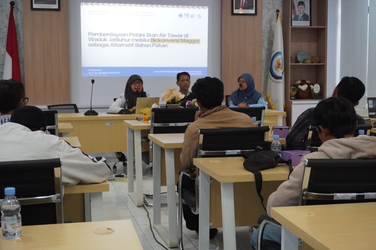 PURWAKARTA – Tim pengabdian masyarakat dari Kelompok Keahlian Oseanografi Lingkungan dan Terapan, Fakultas Ilmu dan Teknologi Kebumian (FITB) Institut Teknologi Bandung (ITB), memberikan edukasi kepada para petani ikan air tawar di sekitar Waduk Jatiluhur mengenai pemanfaatan maggot sebagai alternatif bahan pakan ikan.