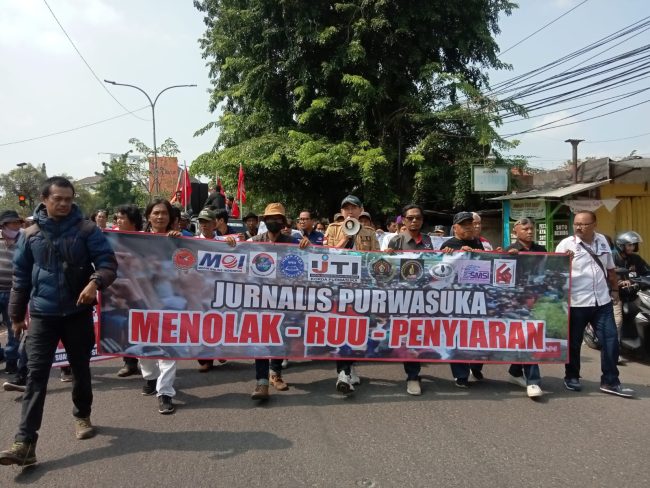 Untuk menolak RUU Penyiaran tersebut, unjuk rasa diikuti oleh forum gabungan jurnalis yang terdiri dari IJTI, PWI, SMSI, AJIB, INPERA, MOI, MIO INDONESIA, SWI, JAWARA serta didukung juga oleh BEK Fakultas Hukum UBP dan Aktivis Karawang.