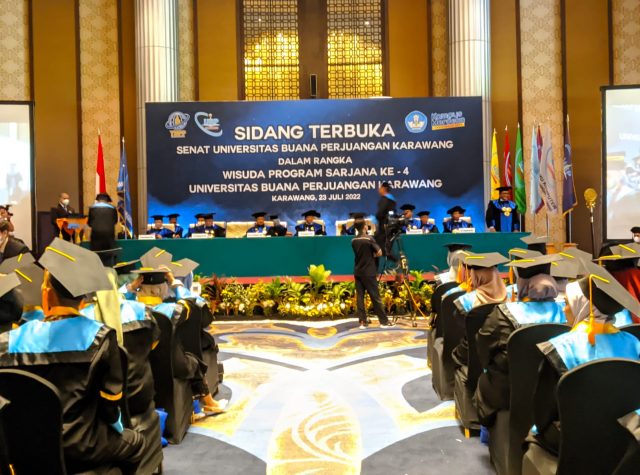 KARAWANG – UBP (Universitas Buana Perjuangan) Kabupaten Karawang melakukan wisuda angkatan ke empat pada Sabtu (23/7) di Resinda Hotel Karawang. UBP mewisuda 471 lulusan dari 10 program studi.