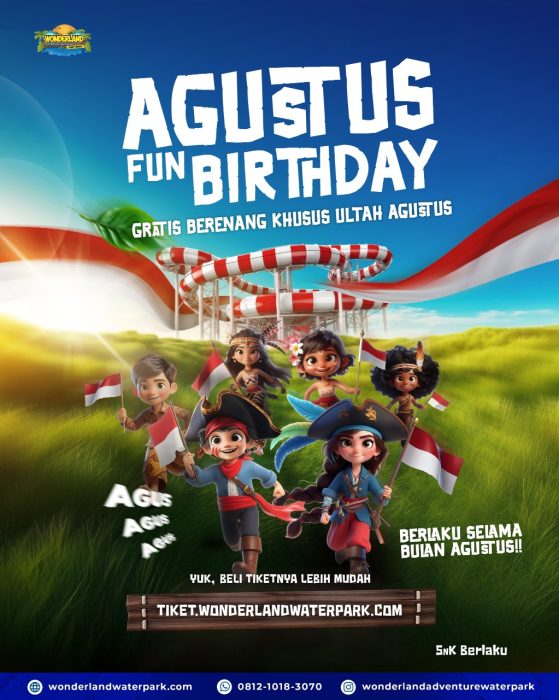 KARAWANG – Dalam rangka memeriahkan Hari Kemerdekaan Republik Indonesia ke-80, Wonderland Karawang menghadirkan promo spesial bagi para pengunjung yang lahir di bulan Agustus. Selama periode 1–31 Agustus 2025, pengunjung yang berulang tahun di bulan tersebut bisa menikmati seluruh wahana air Wonderland Karawang secara gratis!