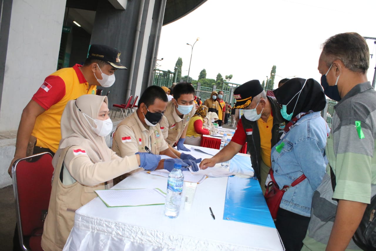 KOTA BEKASI – Sebanyak delapan ribu warga dari wilayah 2 dan 3 mengikuti kegiatan vaksinasi massal di Stadion Patriot Candrabhaga Kota Bekasi. Ribuan warga Kota Bekasi itu berasal dari 8 kecamatan meliputi 4 kecamatan pada setiap wilayah dengan jumlah warga yang divaksin sebanyak 1.000 jiwa per kecamatan.