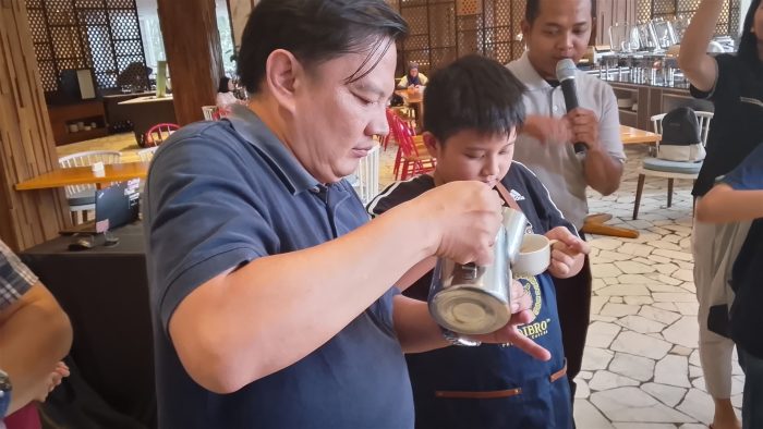 “Awalnya peserta dikenalkan dulu dengan biji-biji kopi Nusantara dan Indibro, baru kemudian praktik membuat latte art mulai dari langkah dasar hingga teknik menuangnya,” ujar Adam.